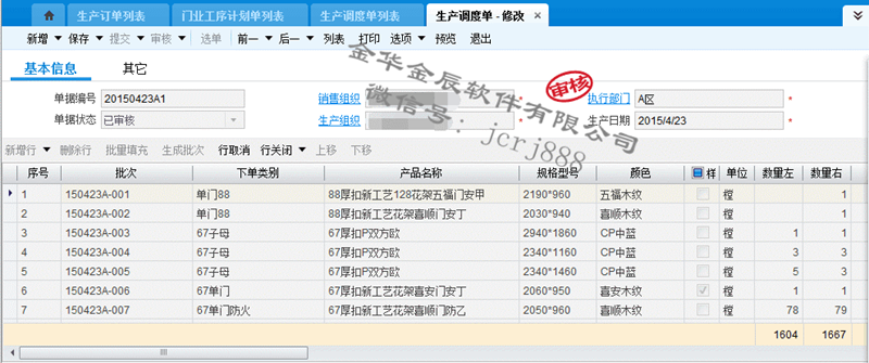 4、 生產調度,系統(tǒng)下單,下單尺寸自動分解、采購物料自動分解。