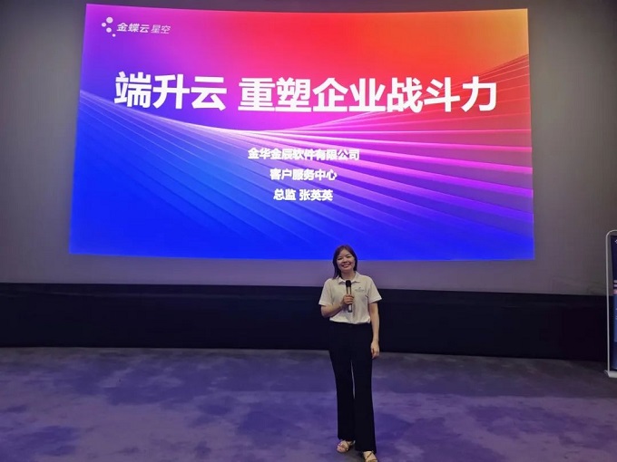緊接著,由金辰軟件客戶服務中心的張英英張總監(jiān)分享主題演講《端升云,重塑企業(yè)戰(zhàn)斗力》。