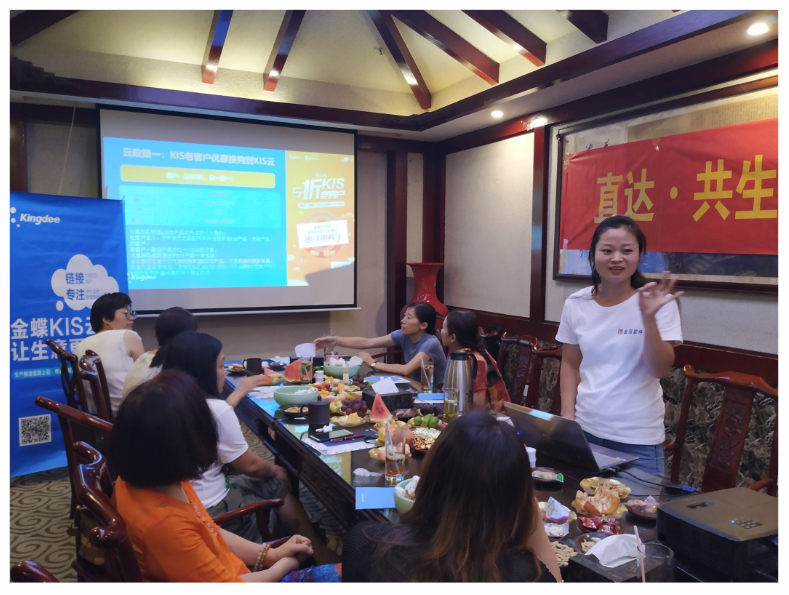 本次活動共吸引來自金華市區(qū)的中小微企業(yè)用戶超過20多人家客戶參與,金蝶蝶金云計算有限公司浙江省區(qū)渠道事業(yè)部霍偉偉先生、金華金辰軟件有限公司副總倪小紅女士參加了此次活動。活動一開始,由金華金辰軟件有限公司副總經(jīng)理倪小紅女士開場致辭。倪小紅女士向客戶簡單介紹了當下上云的必要性以及重要性。