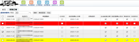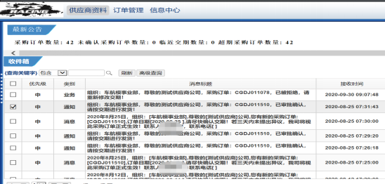 供應(yīng)商交貨情況、訂單消息界面展示